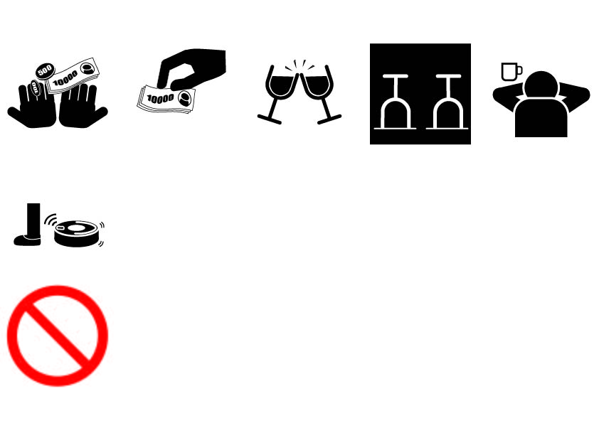 - 左から、散歩中、掃除中、養成中、立ち入り禁止、薬の時間、休憩中、支給日(給料日)、支払日、営業中、閉店です。関連性が今一つないのが反省点。
